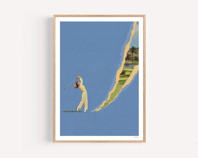 ゴルフの瞬間を、アートとして飾る 「Hook」は、女性ゴルファーがボールを打ち抜く瞬間を描いたヴィンテージ調ゴルフアートプリントです。 スイングの衝撃で表面が裂け、その奥からもうひとつの世界が現れる大胆な表現。 ゴルフの持つ突破力・コントロール・動きの美しさを象徴的に描いた印象的な作品です。 飾るだけで空間にストーリーと存在感を与えてくれます。 ゴルフ好きな方のインテリアに。 こんな場所におすすめです。 ✔ ゴルフ好きの部屋のインテリア ✔ ゴルフショップ・ゴルフバー ✔ カフェ・美容室・ショップの壁面装飾 ✔ ゴルフクラブ・ラウンジ ✔ オフィスの空間演出 ヴィンテージ、スポーツ、クラシックインテリアと相性の良いアートポスターです。 - アーティスト - Ciel Glue(シエルグルー) ポルトガルを拠点に活動するフランス人アーティスト。 パリで15年以上グラフィティアートを制作し、現在はヴィンテージ雑誌や新聞を使った コラージュアートを制作しています。 サーフィンとゴルフからインスピレーションを得た独自の作品スタイルが特徴です。 - Surf & Turf コレクション - Ciel Glueの作品は古い雑誌・新聞・本などの紙素材を再構築したサステナブルなヴィンテージコラージュアート。 サーフィンとゴルフという二つの世界をテーマにしたSurf & Turf シリーズの作品です。 【ご注意】 ※本体商品に額は付属しません。額縁は別途オプションです。 ※ポスターは著作権・版権・肖像権所有者の承認済み正規販売商品です。 ※ポルトガルからの輸入商品となります。 ※印刷物のため、掲載画像と実物では色味が多少異なる場合があります。 ■お届けについて ※送料別途。ただし、2枚以上ご購入の際はクーポンコードHZTBN3WSを入力で「送料無料」となります。 お届けまで 約1週間程度 となります。 在庫状況によりお時間をいただく場合があります。 特急注文や複数購入をご希望の場合は、お気軽にお問い合わせください。