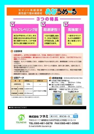 # セメント系超速硬性補修材 あなうめ〜る1kg