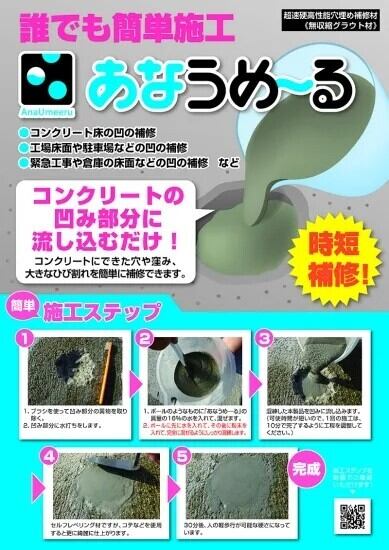こちらはセメント系超速硬性補修材「あなうめ〜る1kg」のご紹介です。短時間で硬化する特性を持つ補修材で、ライフスタイルに役立つアイテムです!