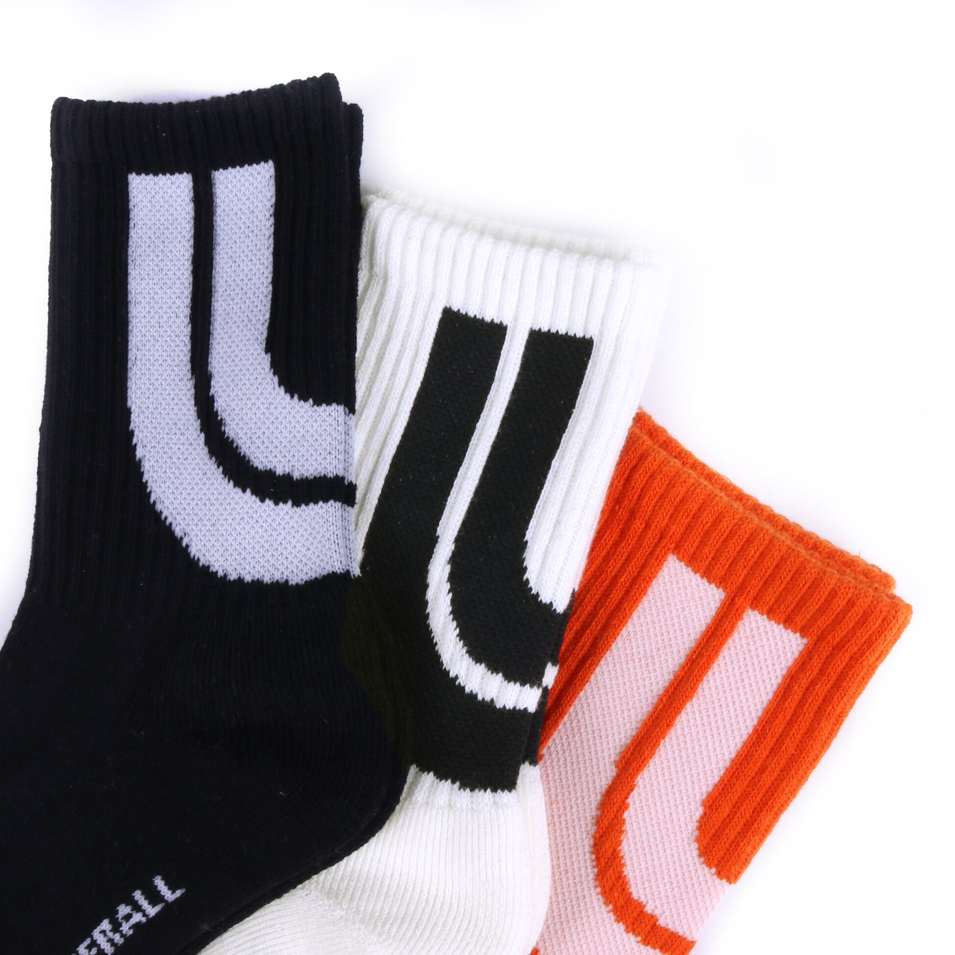 UNIVERSAL OVERALL レディース3Pソックス クルー丈バッグビッグUロゴ