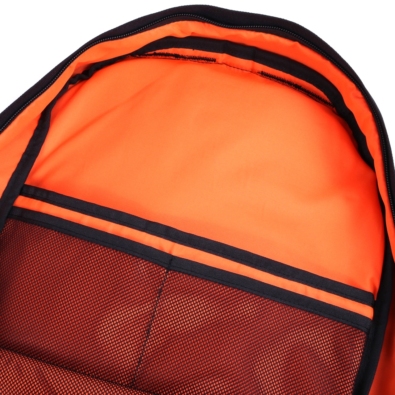シンプルなリュックに、実用性を追求した11のポケットを配置したモデル。フロントポケットはシューズを収納できるほどの大きさがあって、2気室ザック同様の使いやすさがポイントです。裏地はオレンジで、中身が確認しやすいところも見逃せません。ショルダーストラップに付けたミリタリーテイストのキーパーホルダーはデザイン的にも。「UNIVERSAL OVERALL」の特徴的なオレンジタグもアクセントになっています。また、服のテイストを問わずにコーディネートしやすいハリのある素材を採用しています。