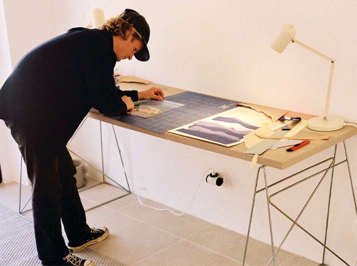 サーフィンとゴルフからインスピレーションを得た独自の作品スタイルが特徴です。