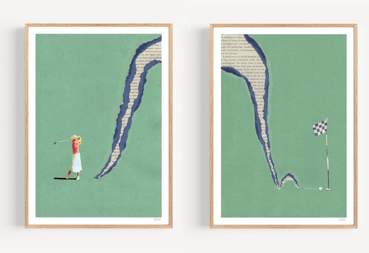 「Albatross」は、ヴィンテージ調のゴルフアートプリント二連作で、ありえないショットがもたらす稀有で魔法のような瞬間を捉えています。