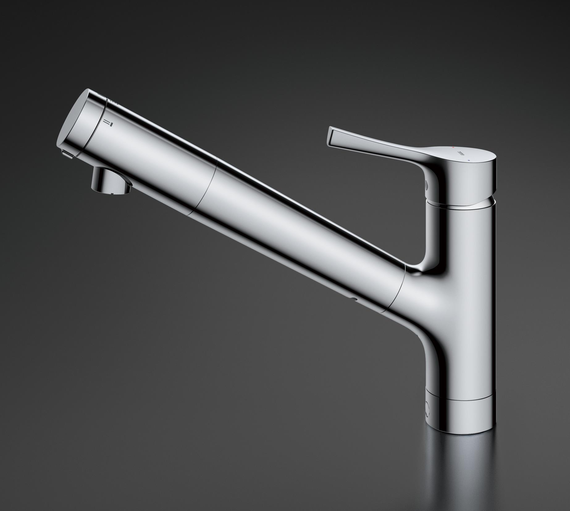 台付シングル混合水栓(エコシングル、浄水カートリッジ内蔵、吐水切替)