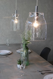 ダイニングテーブルの上に複数並べた多灯使いや、