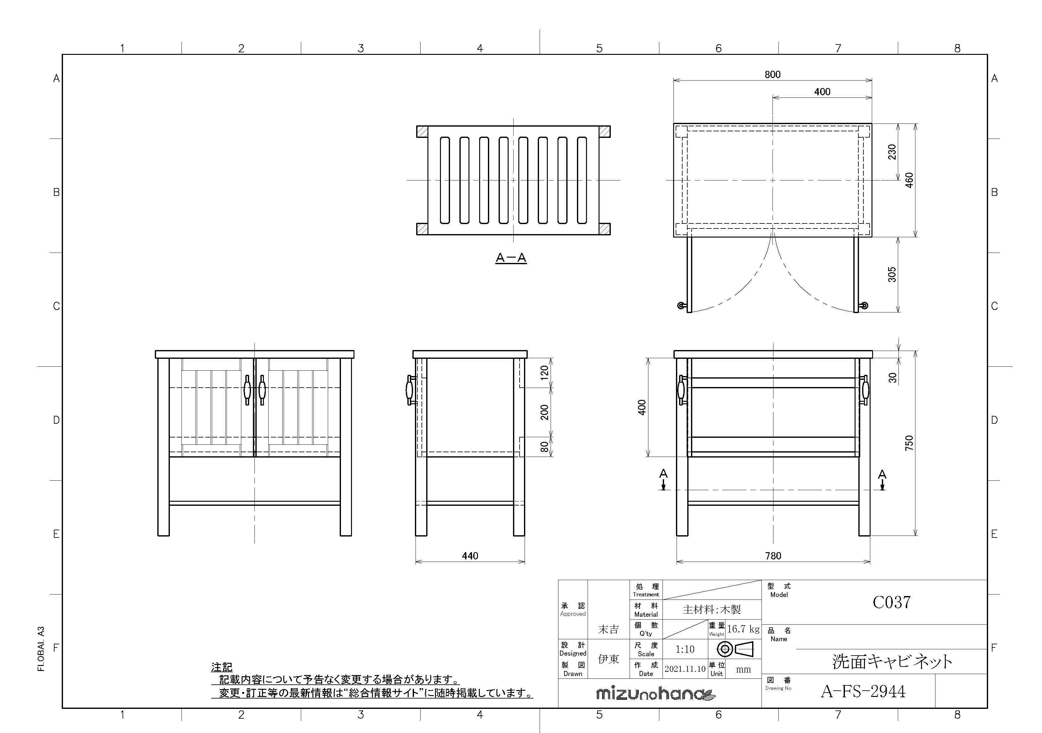 商品名:洗面キャビネット C037