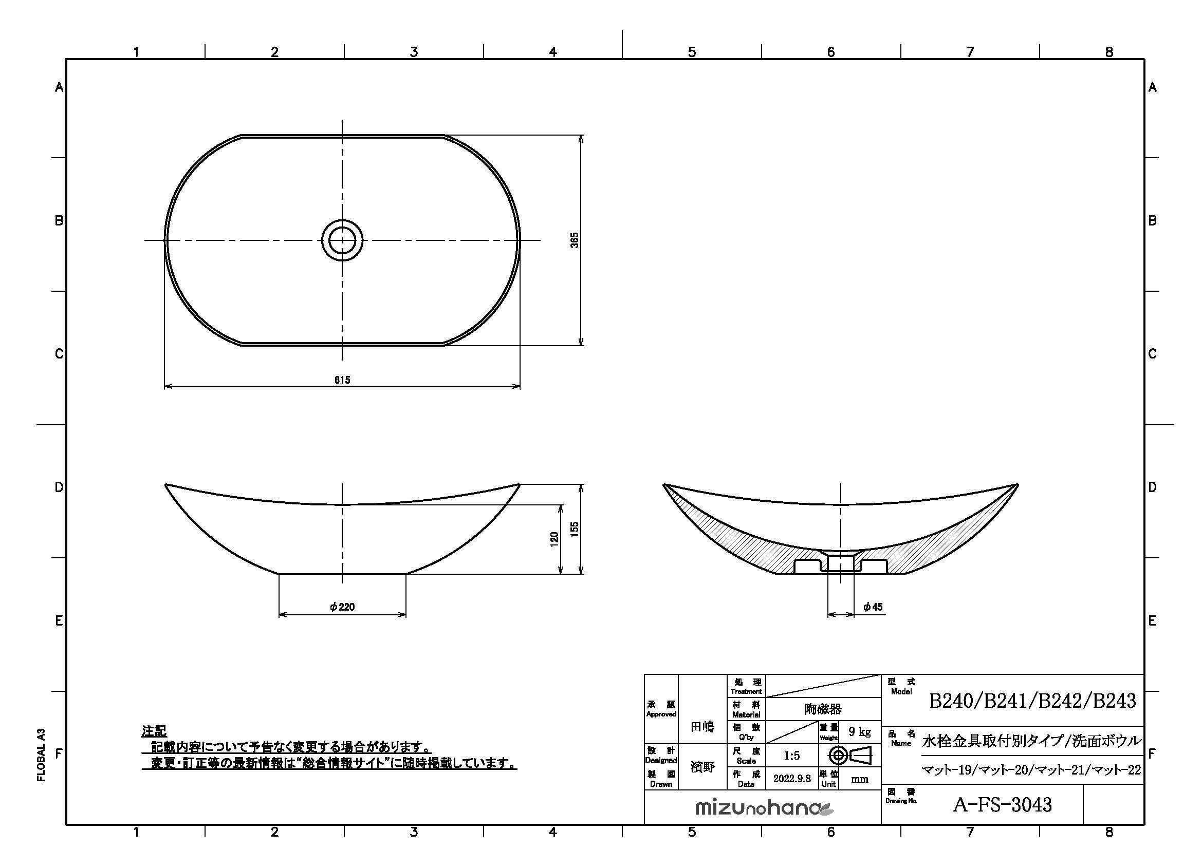 シンプル洗面ボウル マットー19 B240/マットー21 B242 単品 【mizunohana】